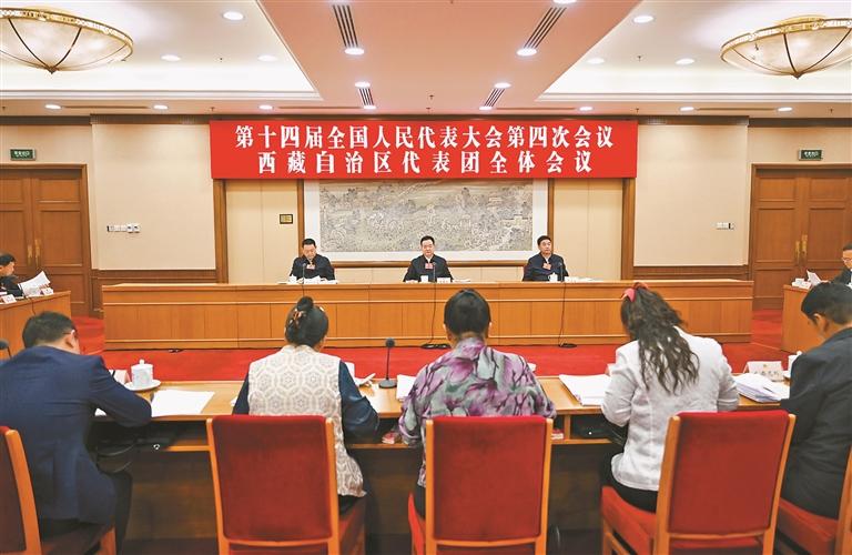 西藏代表团举行全体会议 审议有关报告和决议草案 王君正严金海参加 嘎...